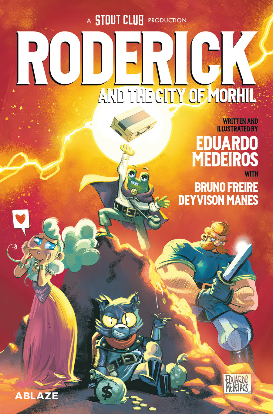 Collecting issues #1-5 of Roderick and the City of Morhil, originally released by Comixology Originals and Stout Club, the creative powerhouse composed by comic creators Eduardo Medeiros, Mateus Santolouco, Rafael Albuquerque, and Rafael Scavone. Eduardo Medeiros' colorful, fantasy tale is the perfect pick for lovers of whimsy and the fantastical, filled with memorable characters and chock-full o' sight gags that allow the reader to linger on the page, looking for more. Presented in print for the first time by ABLAZE!